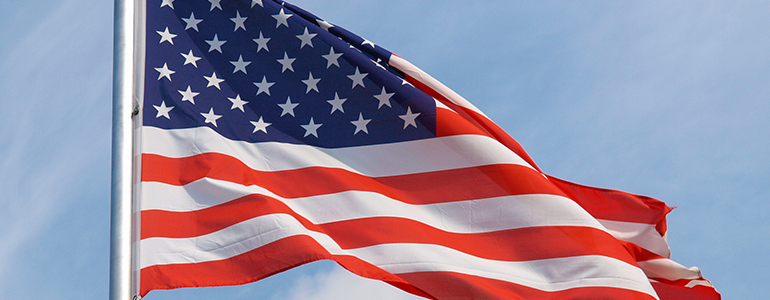 The image is a group of flags arranged in a pinwheel shape outdoors.