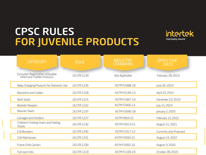 U.S. Consumer Product Safety Commission and Health Canada Rules for Juvenile Products
